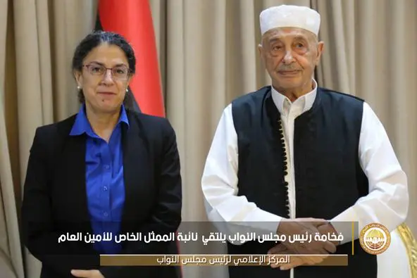 التقى رئيس مجلس النواب عقيلة صالح، نائب المبعوث الخاص بالأمين العام للأمم المتحدة والقائمة بأعمال رئاسة البعثة الأممية لدى ليبيا ستيفاني خوري، والوفد المُرافق لها.