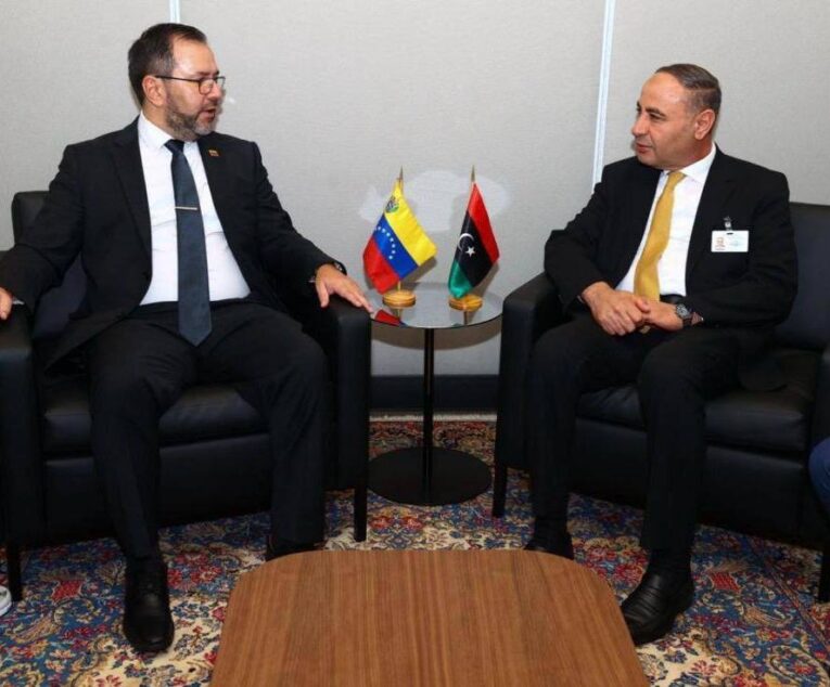 وتناول اللقاء “العلاقات التاريخية بين الشعبين الصديقين وسبل تعزيزها وتطويرها، كما تمت مناقشة عدد من المواضيع والملفات الأخرى ذات الاهتمام المشترك، خاصة عودة السفارة الفنزويلية للعمل من العاصمة طرابلس”.