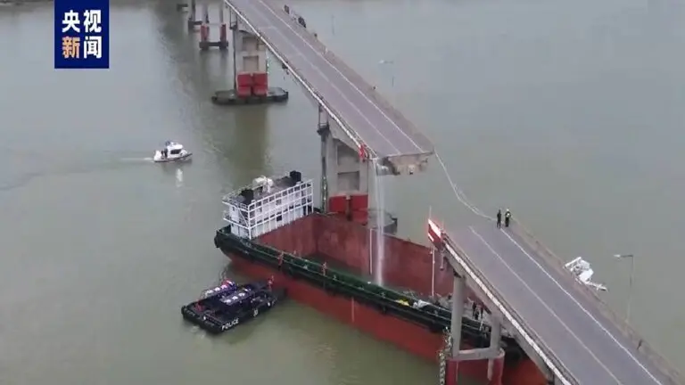 وفي ذات السياق، سقطت حافلة فارغة من الركاب في المياه وفقد الاتصال بالسائق بعد اصطدام سفينة نقل حاويات بطريق جسر فوق النهر وهدم جزء منه في مدينة غوانجو جنوبي الصين، فيما لم تعلن جهات الطوارئ في المدينة عن أي ضحايا.