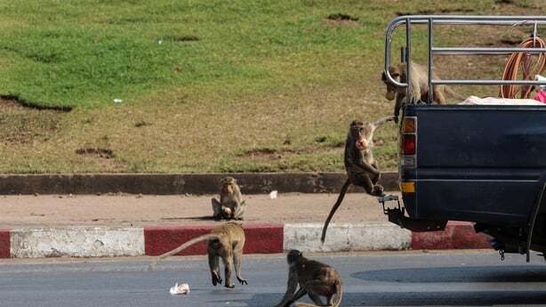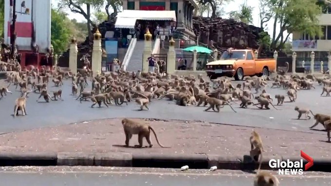 قام مئات القردة بمهاجمة بلدة في تايلاند، وفق ما أعلنت الشرطة، مؤكّدة أن “عناصرها تحصنوا في مركزها الخاص بعد أن قام 200 قرد هارب بأعمال شغب في البلدة، وهاجم أحدها مركز شرطة محلي”.
