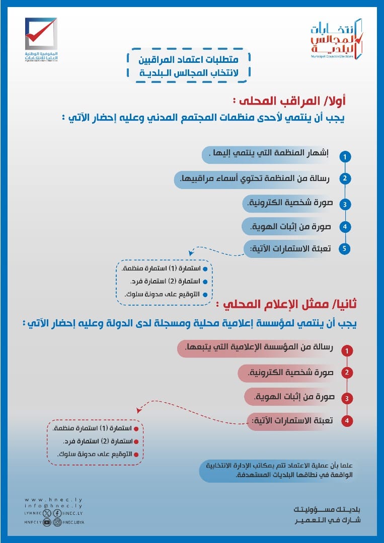 ما هي متطلبات اعتماد المراقبين لانتخاب المجالس البلدية؟ - عين ليبيا