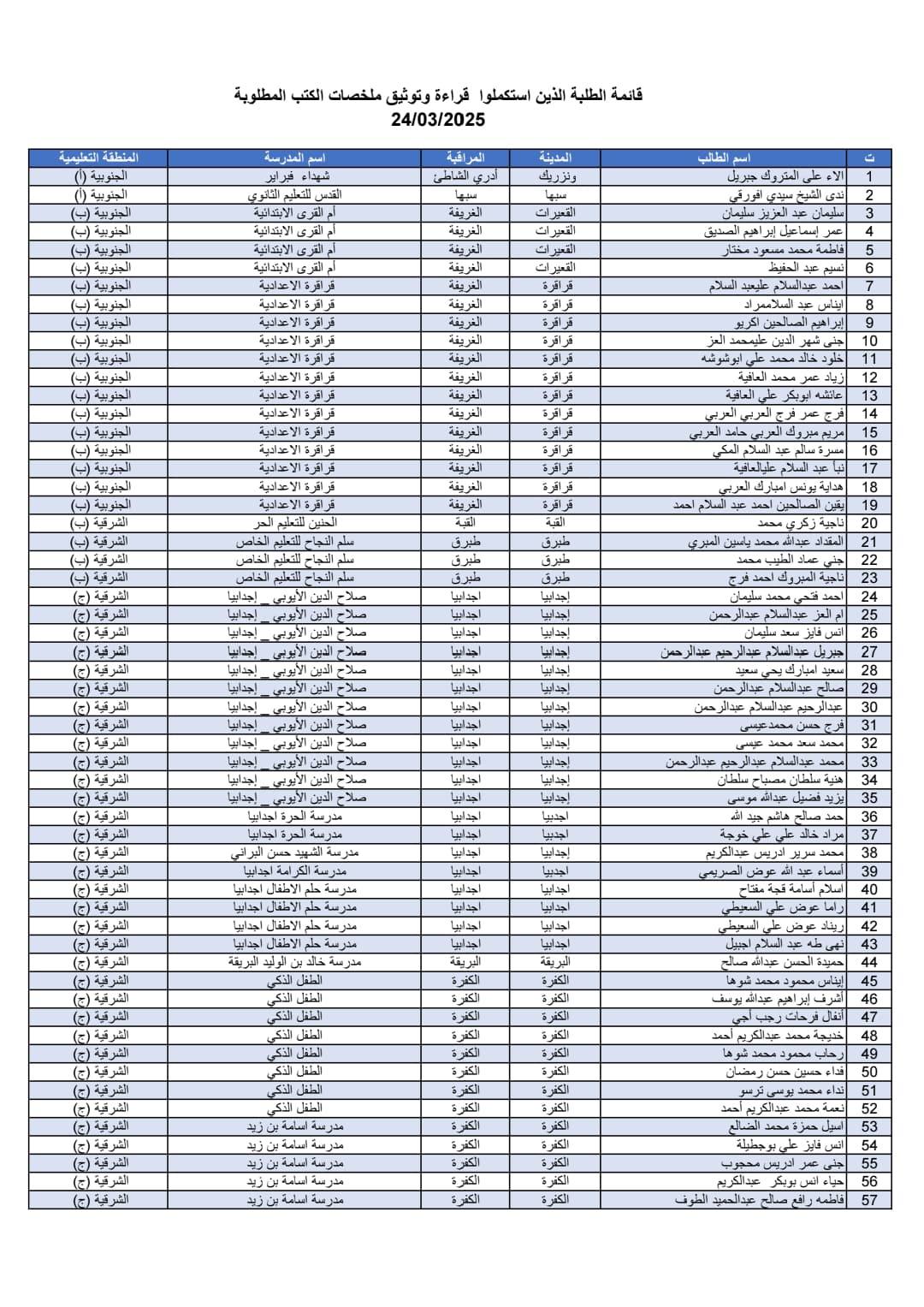 بالتفصيل.. أسماء التلاميذ الذين استكملوا «قراءة الكتب» - عين ليبيا