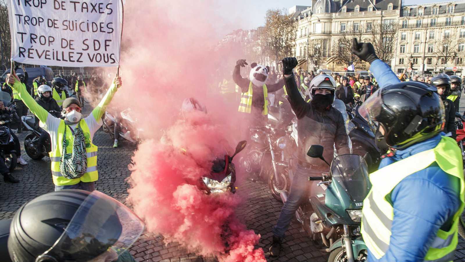 واشتبكت الشرطة الفرنسية مع محتجي السترات الصفراء، فيما سار مئات من المتظاهرين قرب قوس النصر بوسط باريس، في ظل انتشار أمني مكثف.