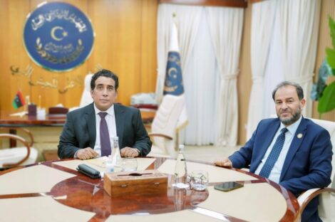التقى رئيس المجلس الرئاسي محمد المنفي، مساء الاثنين، بمقر المجلس في طرابلس، النائب الثاني لرئيس المجلس الأعلى للدولة عمر العبيدي….
