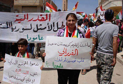 في 2013، أعلن حزب الاتحاد الديمقراطي ابرز ممثل للاكراد في سوريا، اقامة الادارة الذاتية المؤقتة في ثلاث مقاطعات: الجزيرة (الحسكة)، وعفرين وكوباني (ريف حلب)، تحت مسمى “روج آفا”، أي غرب كردستان بالكردية.