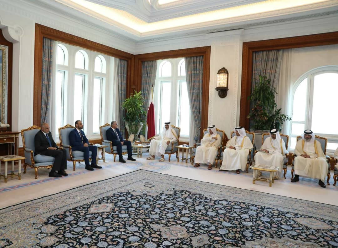 وحضر اللقاء رئيس مجلس الوزراء وزير الداخلية القطري عبد الله بن ناصر آل ثاني، ووزير الخارجية محمد بن عبد الرحمن آل ثاني، وكبار المسؤولين بالدولة القطرية.