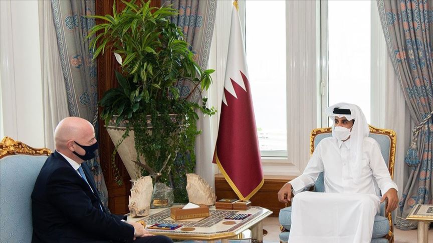 بحث أمير قطر الشيخ تميم بن حمد آل ثاني، مع جياني إنفانتينو، رئيس الاتحاد الدولي لكرة القدم “فيفا”، التطورات المتعلقة باستضافة قطر بطولة كأس العالم 2022.