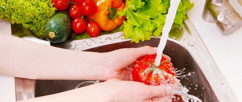 – غسل الخضروات والفواكه تحت ماء جار؛ و ذلك لقدرتها على إزالة بقايا الأوساخ العالقة و لا يساعد نقع الخضراوات والفواكه في تنظيفها وتخليصها من البكتيريا وبقايا المبيدات وذلك لعدم وجود تدفق مائي لإزالتها بحيث تبقى موجودة في نفس الحوض، و يفضل عدم غسل المنتجات الزراعية بالماء والصابون وذلك لقدرتها على إمتصاصه؛ الأمر الذي يؤدي إلى تغير طعمها وتركيبتها.