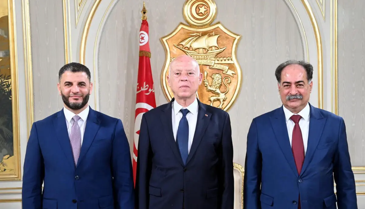 استقبل رئيس الجمهورية التونسية قيس سعيد، اليوم الاثنين، بقصر قرطاج في العاصمة تونس، وزير الداخلية المكلف بحكومة الوحدة الوطنية عماد الطرابلسي، بحضور وزير الداخلية التونسي كمال الفقي.
