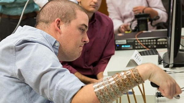 وأعلن العلماء يوم الأربعاء تفاصيل هذا الانجاز لدى المريض لان بوركارت، البالغ من العمر 24 عاما والمصاب بالشلل الرباعي، وذلك بالاستعانة بشريحة مزروعة بالمخ تتولى نقل الإشارات من الدماغ من خلال 130 من الأقطاب الكهربية في الساعد لإحداث حركة في العضلات التي تتحكم في اليدين والأصابع.