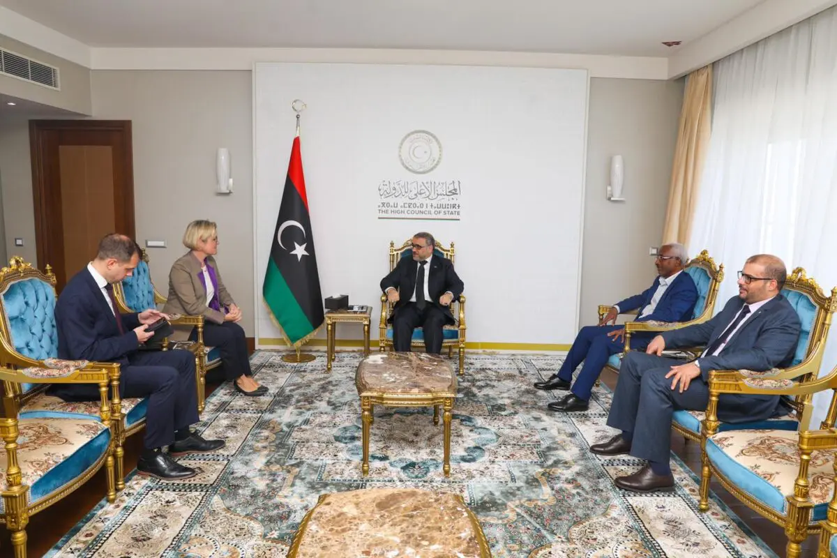 التقى رئيس المجلس الأعلى للدولة خالد المشري، رفقة نائبيه مسعود عبيد وعمر بوشاح، اليوم الثلاثاء، سفيرةَ بريطانيا لدى ليبيا كارولين هورندال، في مقر المجلس بالعاصمة طرابلس.