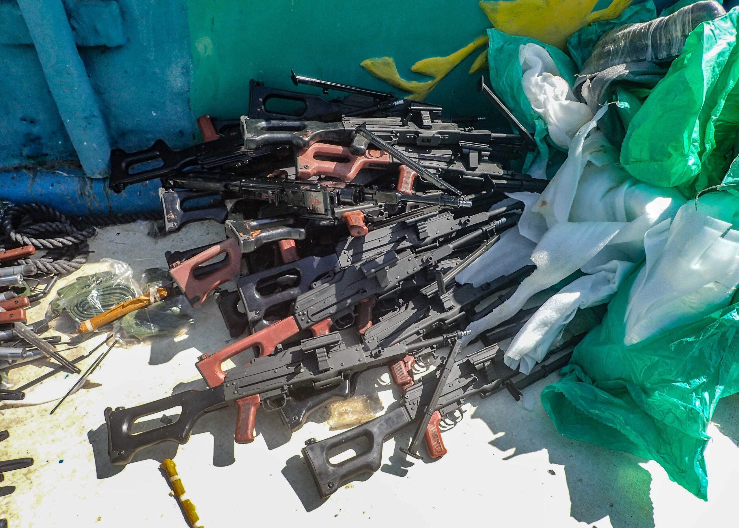وأظهرت الصور التي نشرتها القيادة عشرات من البنادق والأسلحة الرشاشة التي تبدو جديدة وغير مستخدمة، معبأة في أكياس بلاستيكية لحمايتها من المياه كما يبدو.