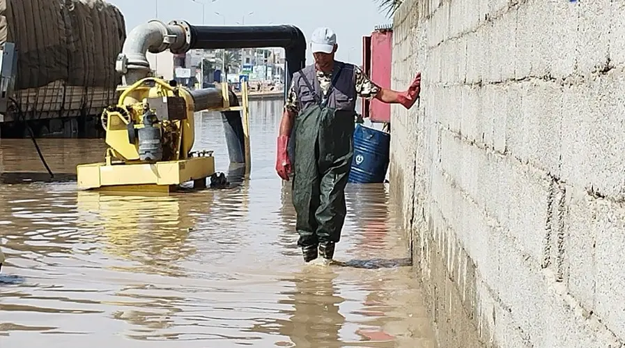 وقال المكتب في بيان له: إن فرق الطوارئ تستخدم مضخات سطحية وغاطسة للشفط، مشيراً إلى أن الأعمال مستمرة حتى الانتهاء من تصريف جميع المياه من المنطقة.