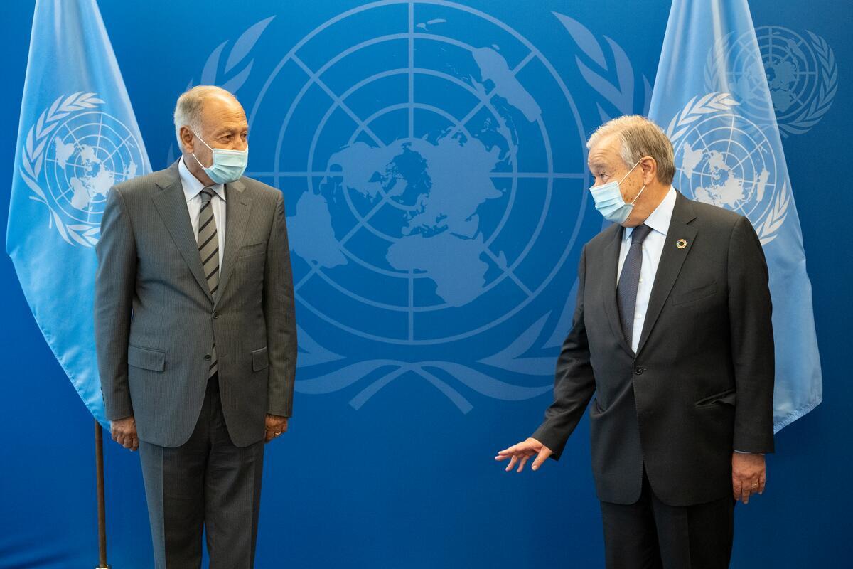 من مداخلة الأمين العام أمام اجتماع متابعة مسار برلين حول الوضع في #ليبياhttps://t.co/9Pvm92uzE5 pic.twitter.com/wussF04KMm— جامعة الدول العربية (@arableague_gs) September 22, 2021