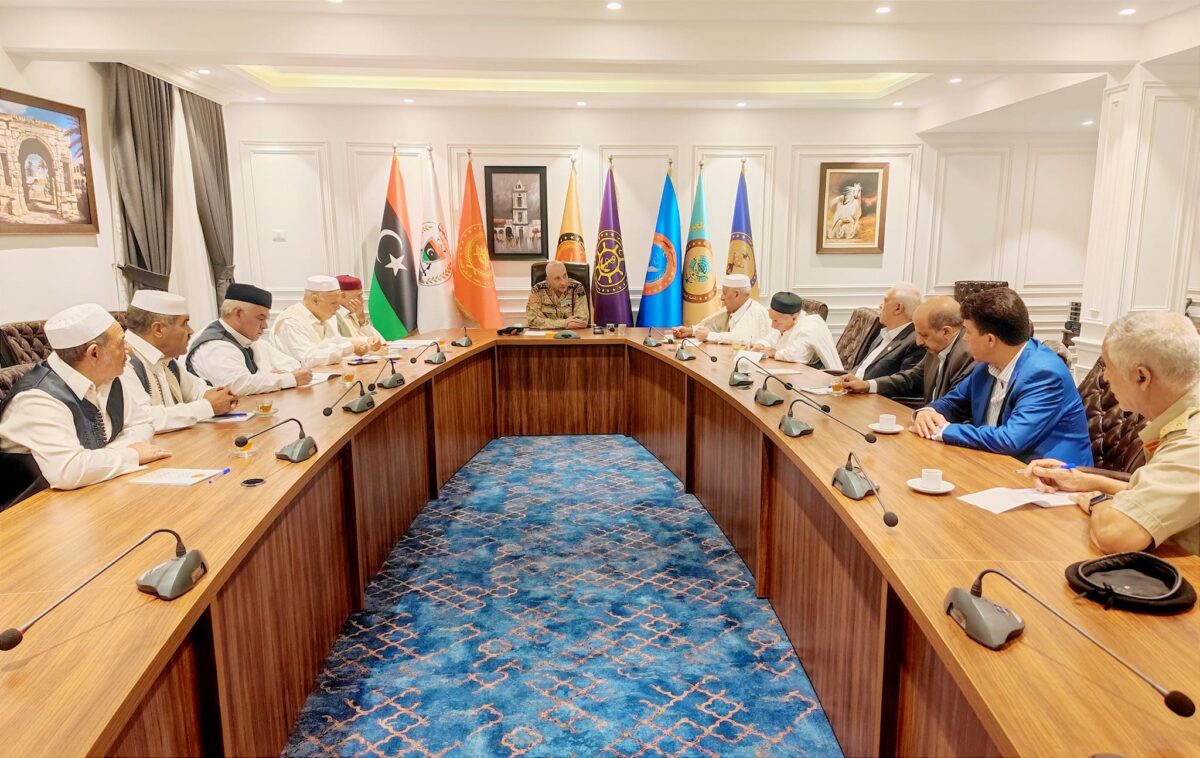 التقى رئيس الأركان العامة الفريق أول ركن محمد الحداد، بمقر رئاسة الأركان العامة في طرابلس، مع عدد من الأعيان والحكماء والمشايخ عن المنطقتين الشرقية والغربية.