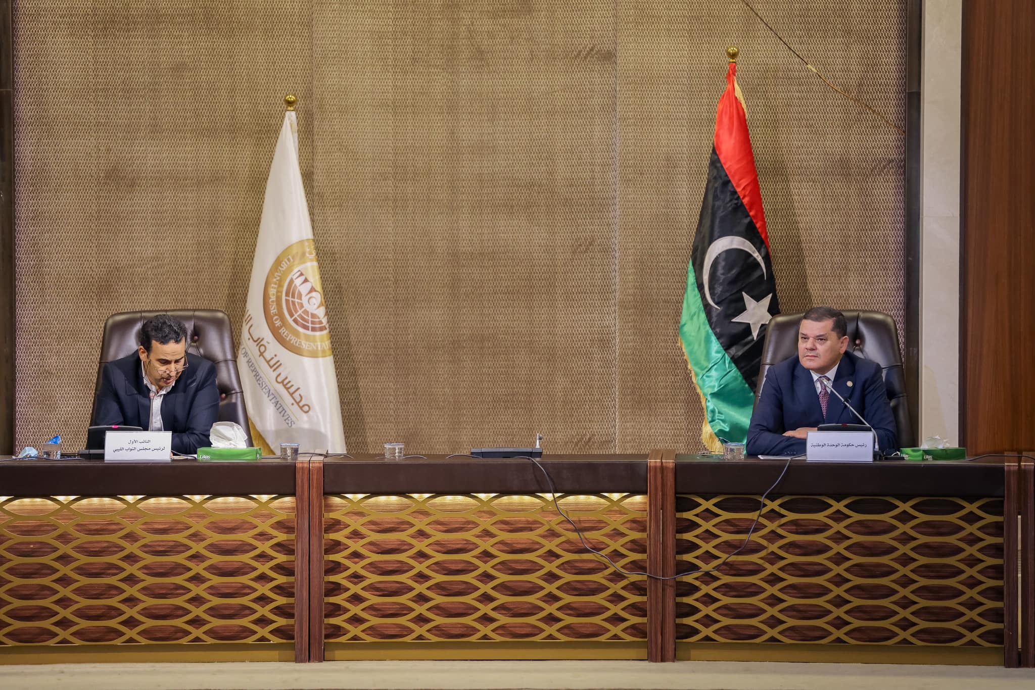 ناقش رئيس حكومة الوحدة الوطنية عبد الحميد الدبيبة، مع أعضاء لجنة التخطيط والمالية والموازنة العامة بمجلس النوّاب، مشروع قانون الميزانية العامة للدولة 2021م وتعديلاته، بحضور النائب الـول لمجلس النواب فوزي النويري، ووزراء المالية والمواصلات والحكم المحلي، ووزير الدولة لشؤون مجلس الوزراء ورئيس الحكومة.
