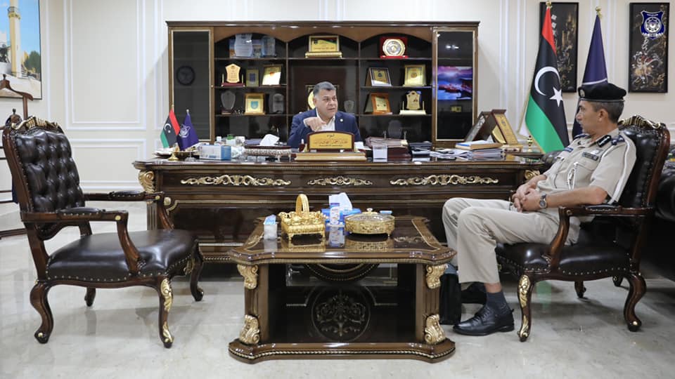 اجتمع وزير الداخلية لواء خالد مازن، اليوم الأحد، مع رئيس إدارة شؤون المرور والتراخيص عميد الصديق الشيباني.