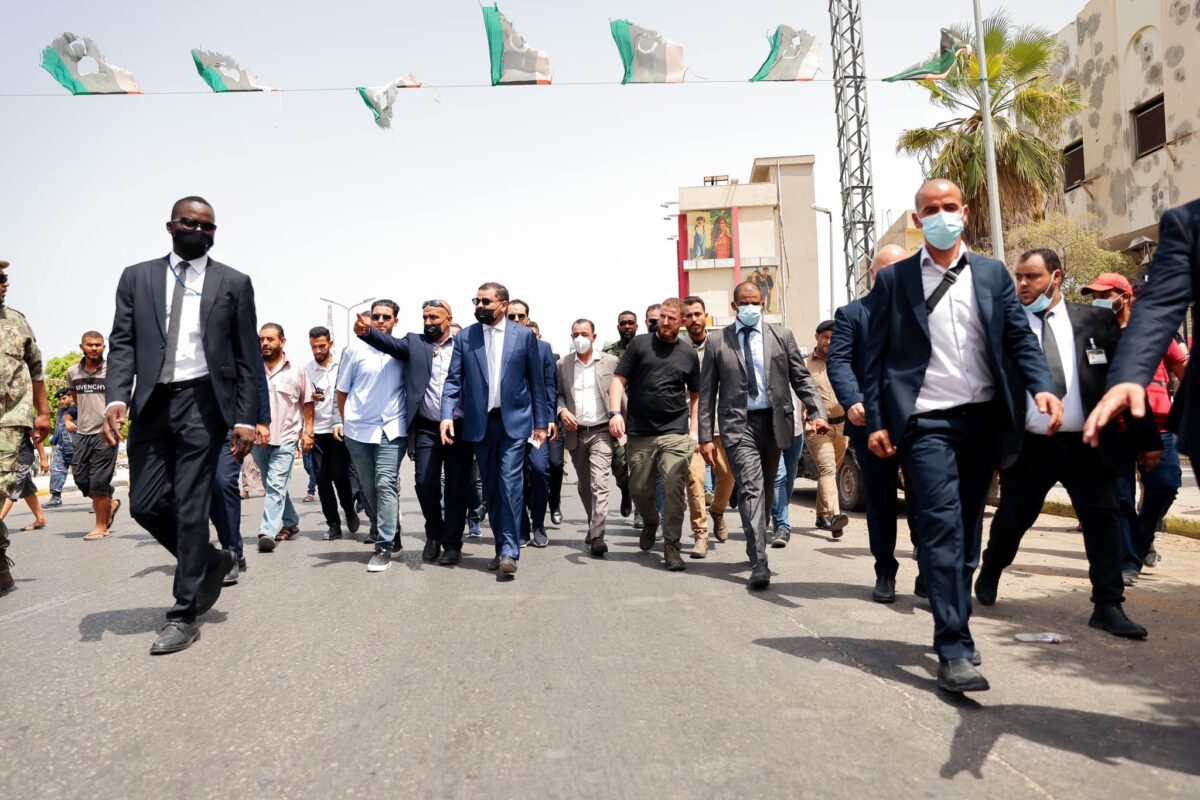 كما شملت الزيارة تفقد مديرية أمن الزاوية إلى جانب التوقف بميدان الزاوية حيث تجول بالمباني المتضررة والمدمرة أثناء حرب التحرير، حيث أعطى رئيس الحكومة تعليماته للأجهزة التنفيذية لوضع المقايسات اللازمة لهذه المشاريع.