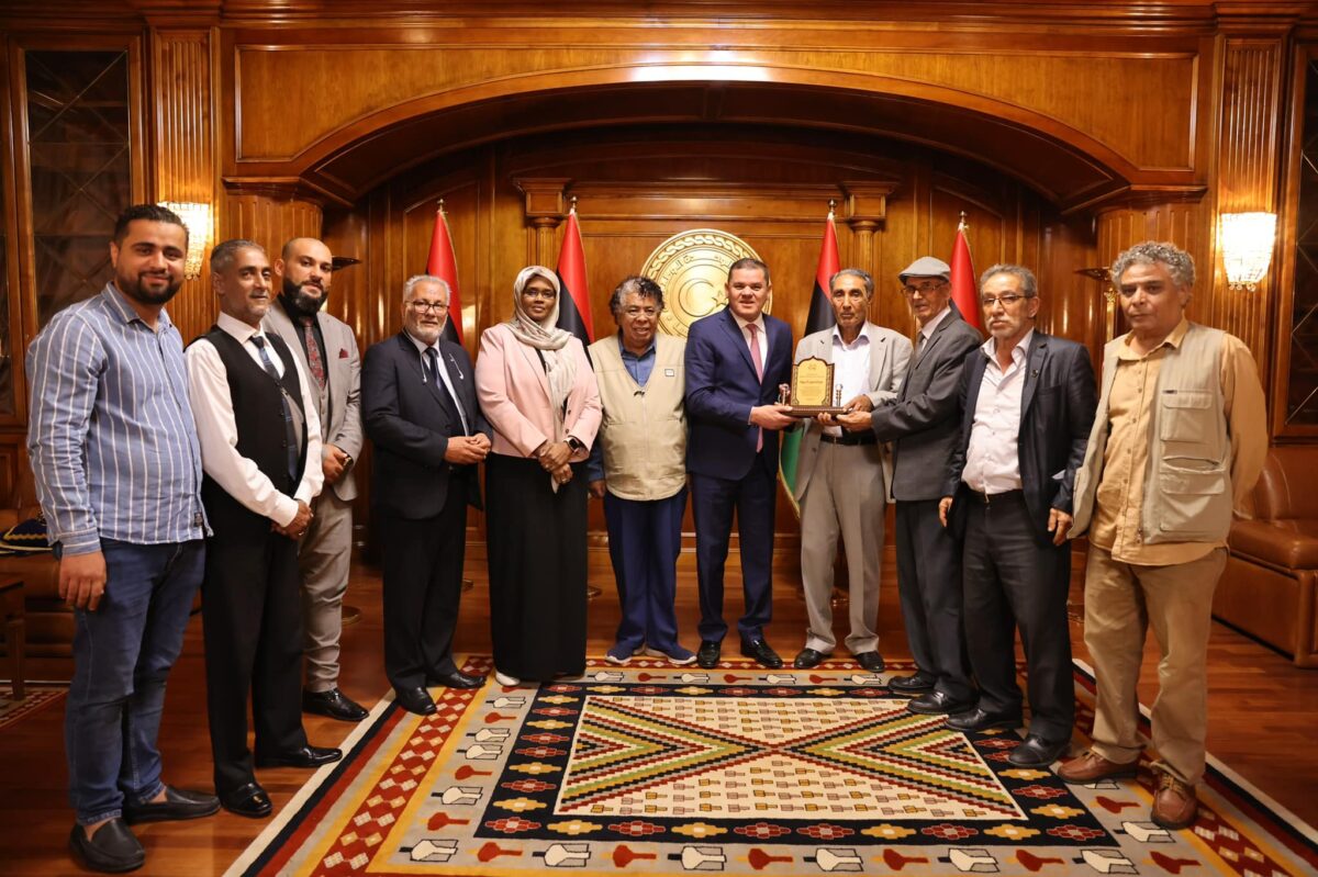 وحضر اللقاء الذي عُقِد بديوان رئاسة الوزراء في طرابلس، وزيرة الثقافة، ورئيس الهيئة العامة للمسرح والخيالة المكلف، ونقيب الفنانين.