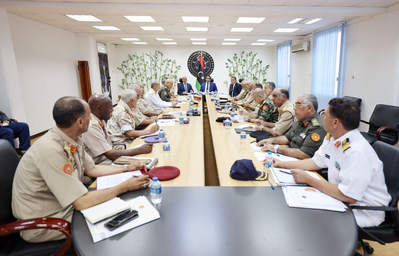 التقى رئيس المجلس الرئاسي محمد المنفي، ونائب المجلس عبدالله اللافي، بصفتهما القائد الأعلى للجيش الليبي، اليوم الاثنين، رئيس حكومة الوحدة الوطنية وزير الدفاع عبد الحميد الدبيبة، ورئيس الأركان العامة فريق أول ركن محمد الحداد، ورؤساء الأركان النوعية، وأعضاء اللجنة العسكرية المشتركة 5+5 عن المنطقة الغربية، وآمري المناطق العسكرية الغربية، ومكافحة الإرهاب، وجهاز الحرس الرئاسي، والاستخبارات، والشرطة العسكرية، ورئيس هيئة العمليات.