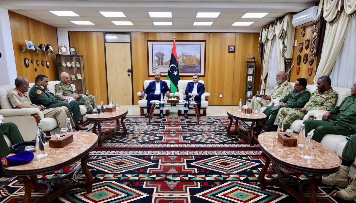 وتم التأكيد خلال اللقاء على تعزيز دور المؤسسة العسكرية في حفظ الأمن، وبسط سيطرة الدولة على المنافذ الحدودية لتحقيق الاستقرار في كل مناطق ليبيا، بحسب ما أفاد المكتب الإعلامي بالمجلس الرئاسي.
