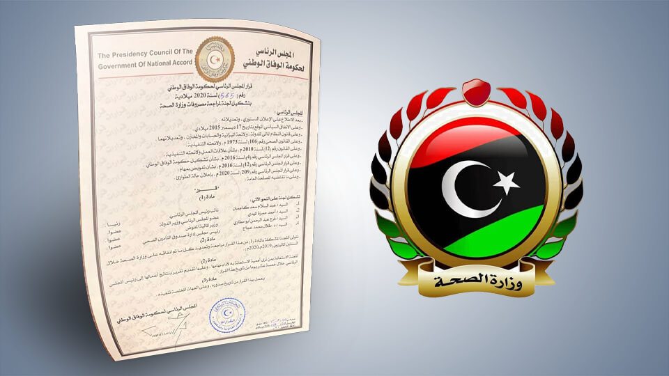 أصدر المجلس الرئاسي لحكومة الوفاق الوطني اليوم السبت، القرار رقم (565) لسنة 2020م بتشكيل لجنة لمراجعة مصروفات وزارة الصحة.