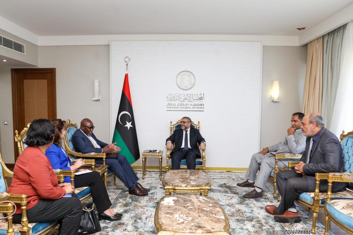 جاء ذلك خلال لقائه رئيس المجلس الأعلى للدولة خالد المشري ونائبه الأول ناجي مختار، بحثا الجانبان خلاله تطورات الوضع في البلاد.