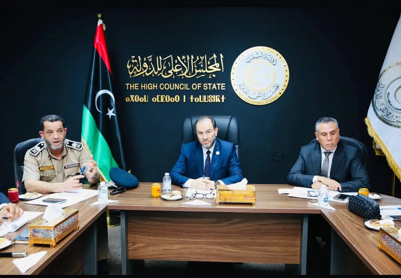 عقد النائب الثاني لرئيس المجلس الأعلى للدولة الدكتور”عمر العبيدي”، الاجتماع التقابلي بين لجنة الأمن القومي بالمجلس ورئيس مصلحة الأحوال المدنية اللواء “طارق الثمن” ونائب رئيس المصلحة للرقم الوطني ومديري إدارتي الشؤون الإدارية والمالية بالمصلحة.