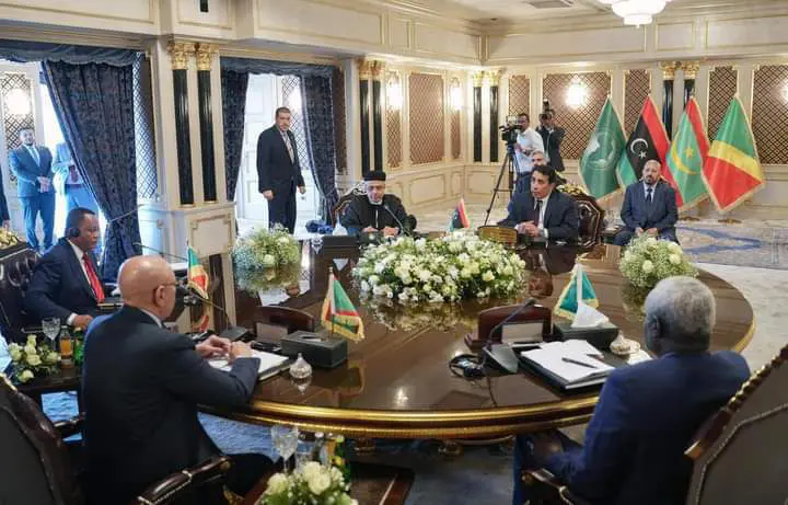 ويشكل الاجتماع، “استمراراً لالتزام الاتحاد الإفريقي بمسار المصالحة الوطنية وبوحدة ليبيا وسيادتها واستقرارها في مواجهة التدخلات الخارجية، وهو ما أكده الرئيس الغزواني وفكي والوزير جان كلود في كلماتهم والتي تأتي تجسيداً لقرار الاتحاد الإفريقي في دورته المنعقدة في فبراير 2024 م، ولنداء برازافيل الصادر عن قمة لجنة الاتحاد الإفريقي رفيعة المستوى المعنية بليبيا”.