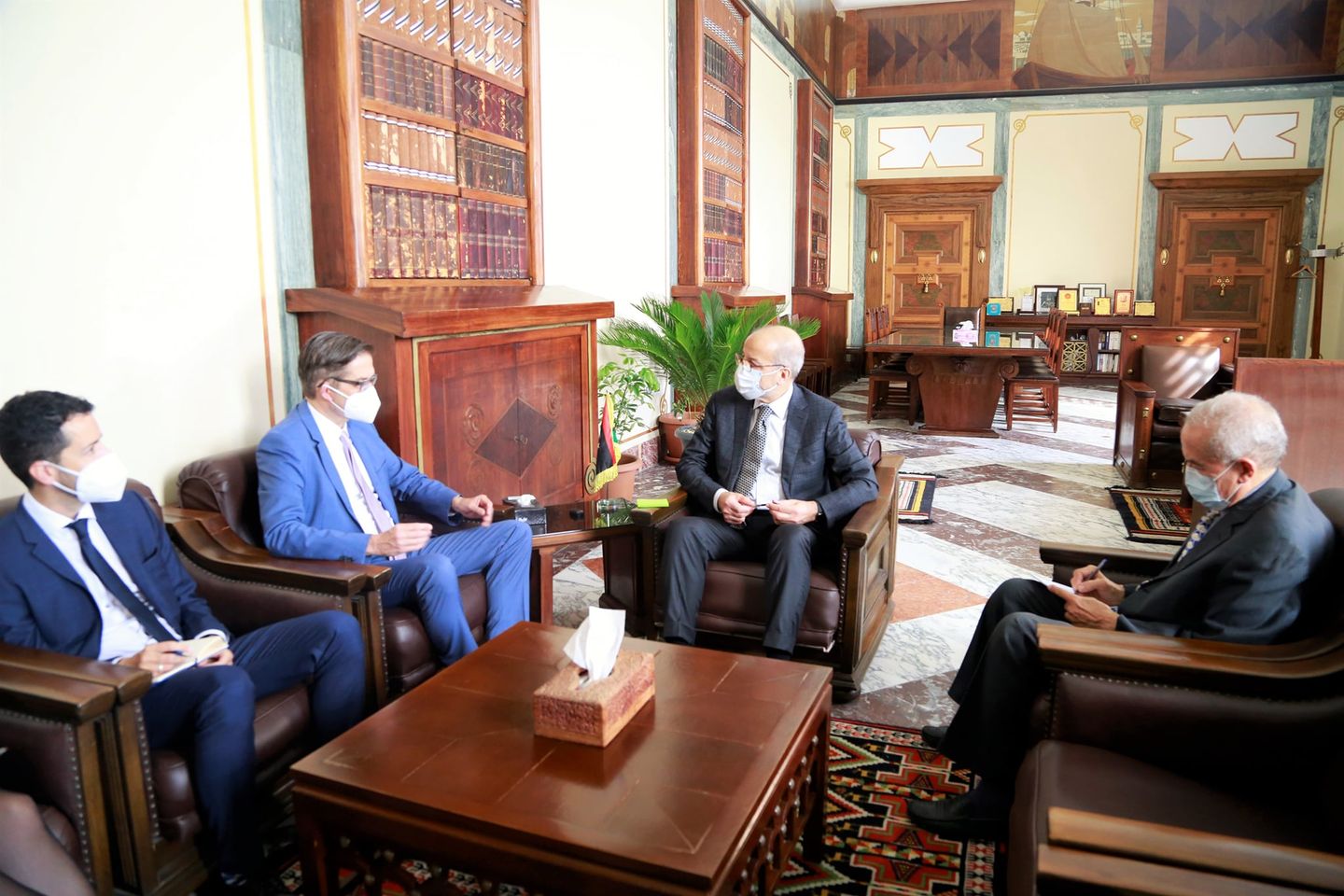 استقبل الصديق عمر الكبير محافظ مصرف ليبيا المركزي، بمكتبه في طرابلس، اليوم الخميس، أوليفر أوفيتشا سفير دولة ألمانيا لدى ليبيا، بمناسبة انتهاء مهامه في ليبيا بحضور نائب السفير ومسئولة الشؤون السياسية بالسفارة.