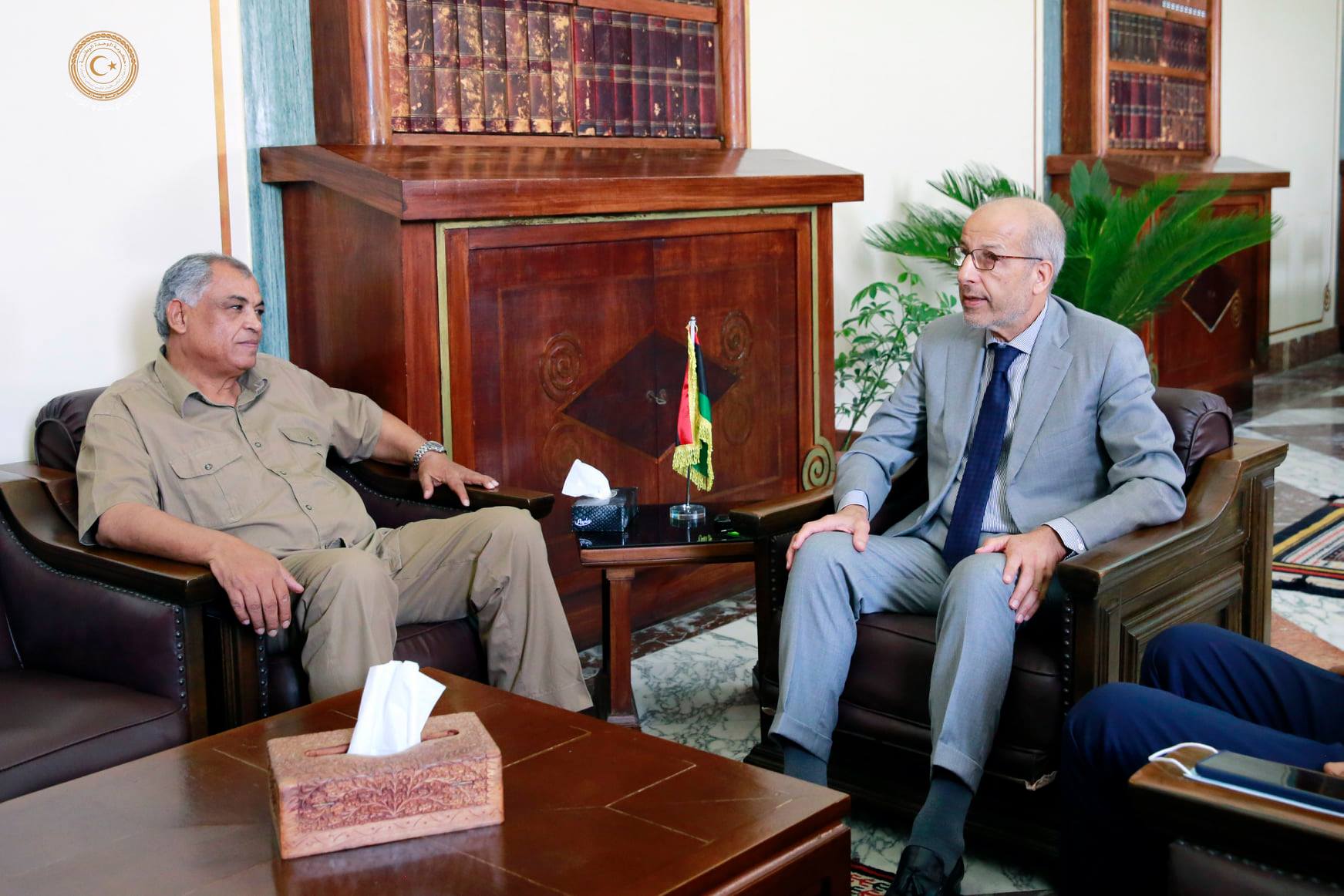 عقد النائب الأول لرئيس مجلس الوزراء حسين اعطية القطراني، اليوم الاربعاء بمقر مصرف ليبيا المركزي في طرابلس، اجتماعا مع محافظ مصرف ليبيا المركزي الصديق الكبير.