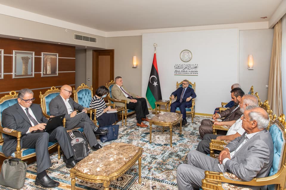 التقى رئيس المجلس الأعلى للدولة خالد المشري، اليوم الاثنين، رئيس بعثة الأمم المتحدة للدعم في ليبيا يان كوبيش، بمقر المجلس في العاصمة طرابلس، بحضور النائب الأول لرئيس المجلس مسعود اعبيد، ورئيس لجنة الشؤون المالية بالمجلس بشير الهوش، ورئيس لجنة الشؤون القانونية بالمجلس عادل كرموس، ورئيس لجنة مكافحة الفساد محمد أبوسنينة.