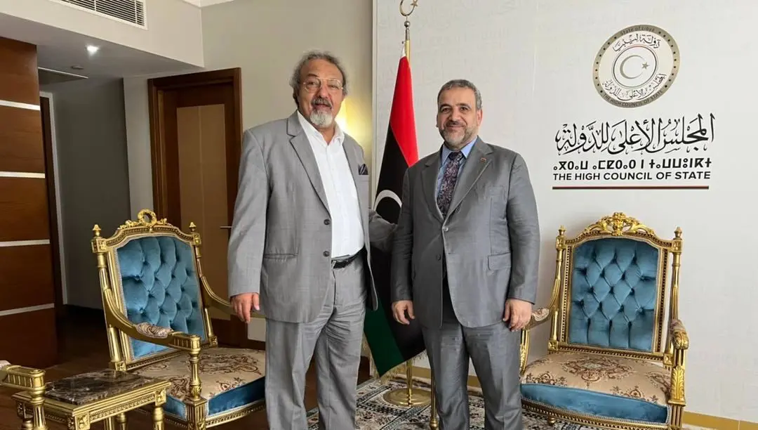 التقى رئيس المجلس الأعلى للدولة خالد المشري، اليوم الأحد، بمقر المجلس في طرابلس، رئيس جهاز المخابرات الليبية الفريق أول حسين العائب.