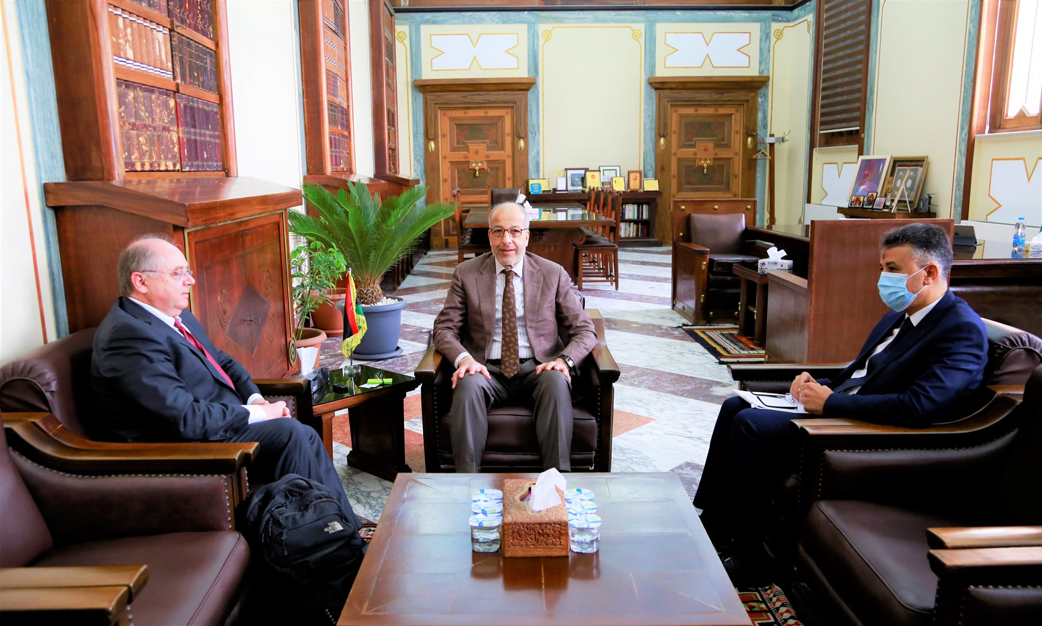 عقد محافظ مصرف ليبيا المركزي الصديق الكبير، اجتماعاً بمكتبه في طرابلس، اليوم الأربعاء، مع مايكل شيفر ممثل البنك الدولي لدى ليبيا.