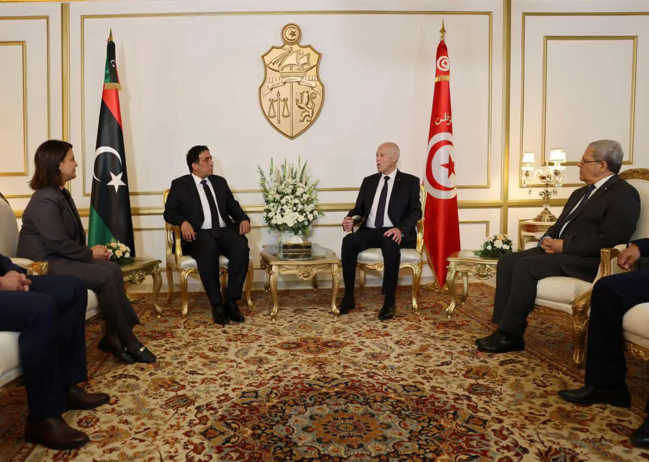 وكان في استقبال المنفي والوفد المرافق له، رئيس الجمهورية التونسية قيس سعيد.