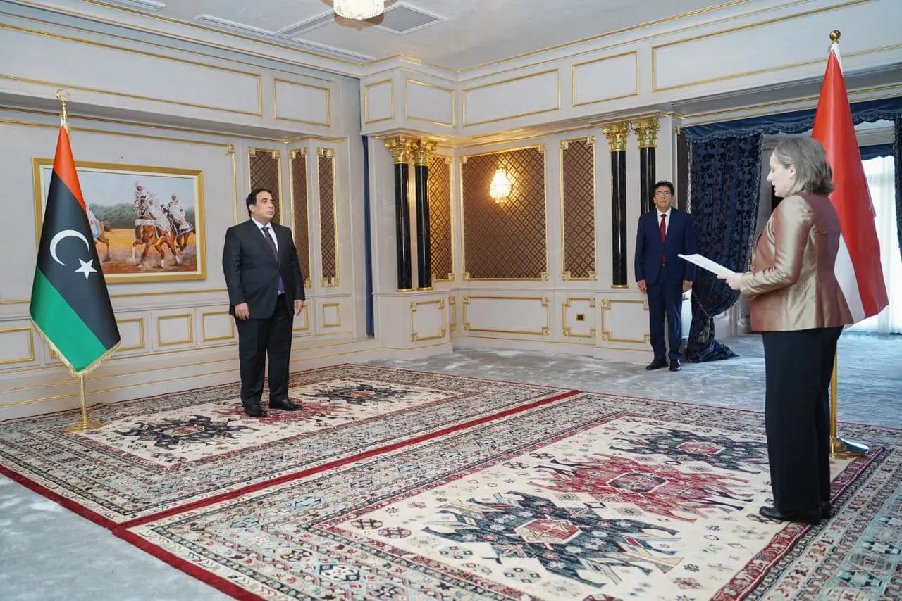 اعتمد رئيس المجلس الرئاسي محمد المنفي، اليوم السبت، في العاصمة طرابلس، أوراق 3 سفراء جُدد لدى ليبيا، وتسلم أوراق اعتماد كل من سفير جمهورية موريتانيا الإسلامية محمد بابانه، وسفيرة جمهورية النمسا باربرا غرس، وسفير جمهورية كوريا الجنوبية جانغ جيهاك.