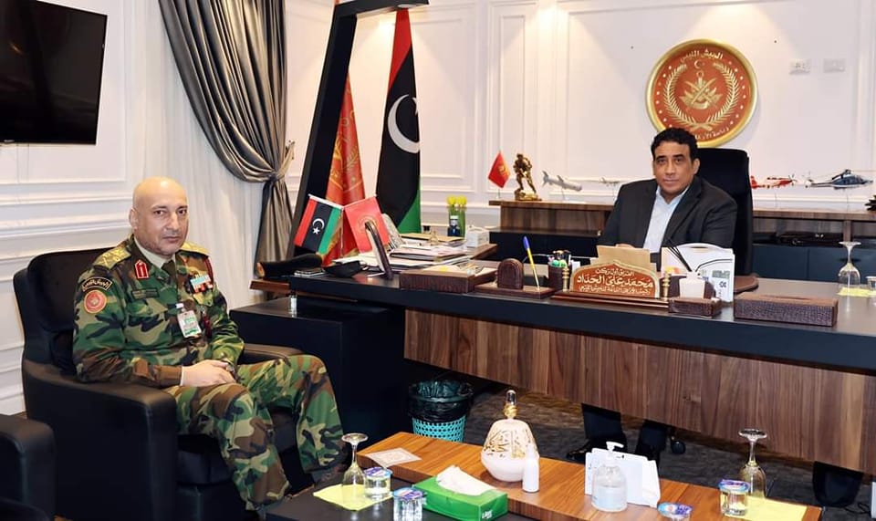 استقبل رئيس الأركان العامة الفريق أول ركن محمد علي الحداد، اليوم الاثنين، رئيس المجلس الرئاسي محمد المنفي، بمقر رئاسة الأركان العامة في طرابلس.