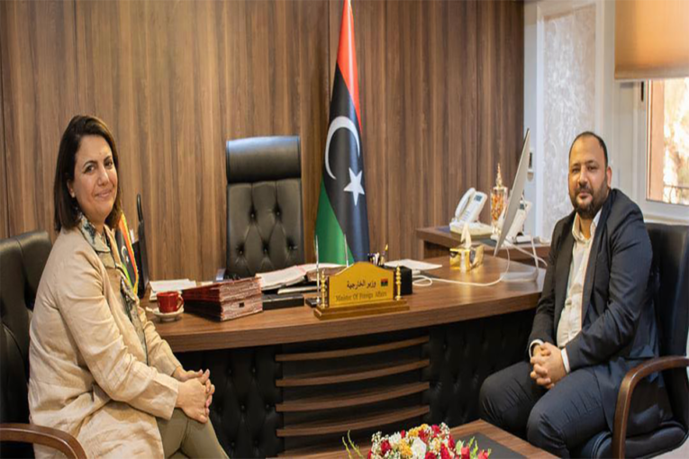 التقت وزيرة الخارجية والتعاون الدولي نجلاء المنقوش، أمس الخميس، بمقر الوزارة في العاصمة طرابلس، وزير الشباب فتح الله الزني.