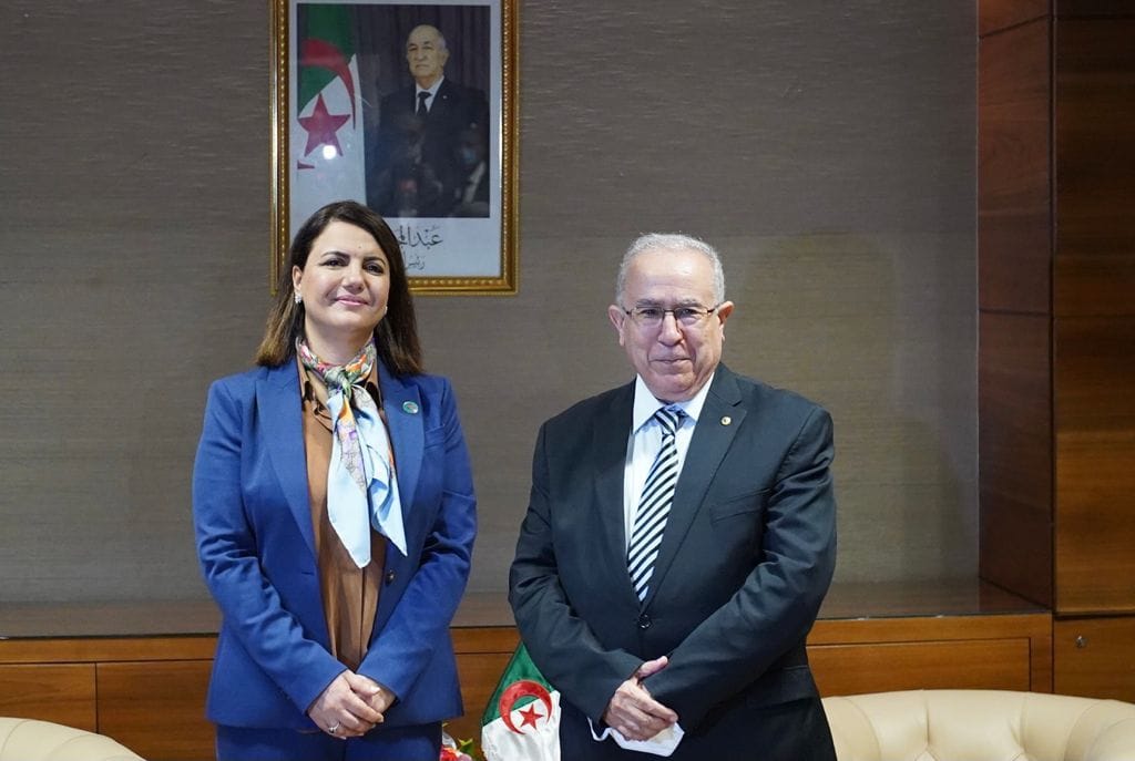 ورحب وزير الخارجية الجزائري في مستهل اللقاء، بوزيرة الخارجية والتعاون الدولي نجلاء المنقوش، مشيرا إلى عمق العلاقات الأخوية والمتميزة التى تربط الشعبين الشقيقين.