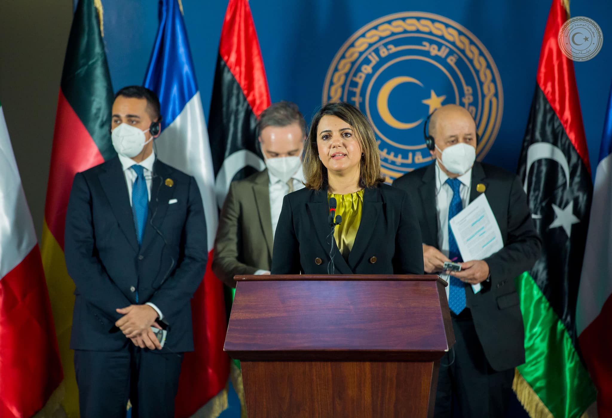 عقدت وزيرة الخارجية بحكومة الوحدة الوطنية نجلاء المنقوش، مؤتمرًا صحفيًا مشتركًا، اليوم الخميس، مع وزراء كل من ألمانيا وفرنسا وإيطاليا.