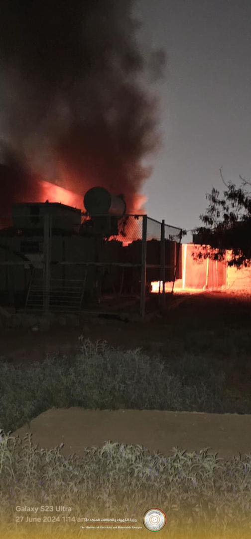 وقالت وزارة الكهرباء في الحكومة المكلفة من مجلس النواب، أن فرق الإطفاء بالدفاع المدني سيطرت على الحريق.
