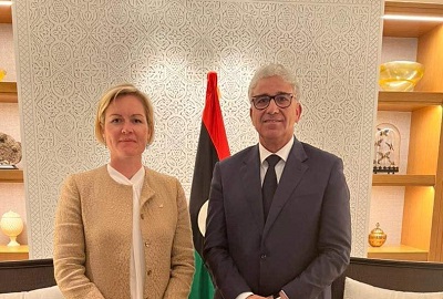 تلقى رئيس الحكومة الليبية المُكلف من مجلس النوّاب فتحي باشاغا، مكالمة هاتفية، من سفيرة بريطانيا لدى ليبيا كارولاين هرندل.
