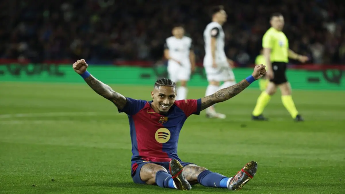 وسجل فرينكي دي يونغ الهدف الأول في الدقيقة الثالثة بعد عرضية من لامين جمال، ثم أضاف فيران توريس الهدف الثاني في الدقيقة الثامنة بتسديدة بوجه القدم الخارجي.