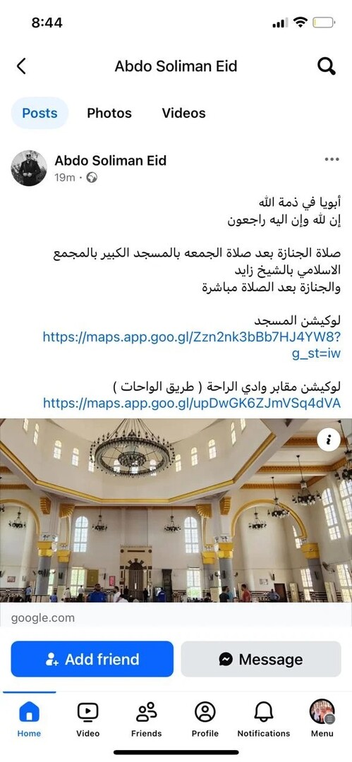 وأعلن عبدو سليمان عيد، نجل الفنان الراحل، عبر حسابه على فيسبوك، “أن صلاة الجنازة ستُقام بعد صلاة الجمعة في المجمع الإسلامي بمدينة الشيخ زايد”.