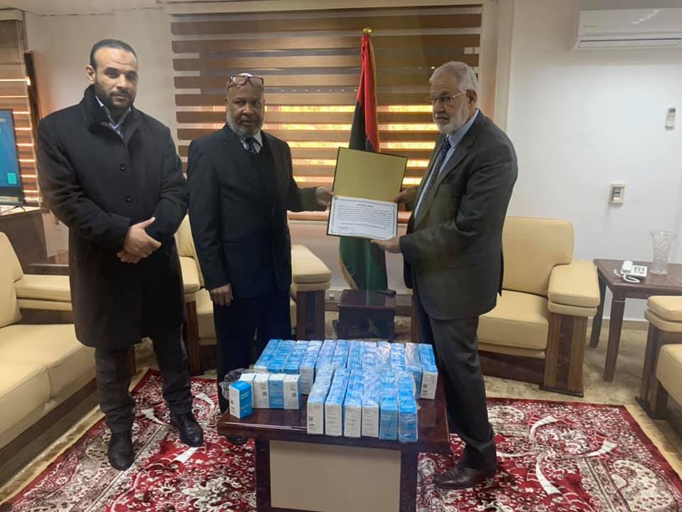 قام وزير الصحة المفوض أحميد بن عمر ووكيل الوزارة العام محمد هيثم باستلام أولى الدفعات من دواء اللشمانيا وذلك بمقر وزارة الخارجية أمس الجمعة وبحضور وزير الخارجية محمد سيالة.