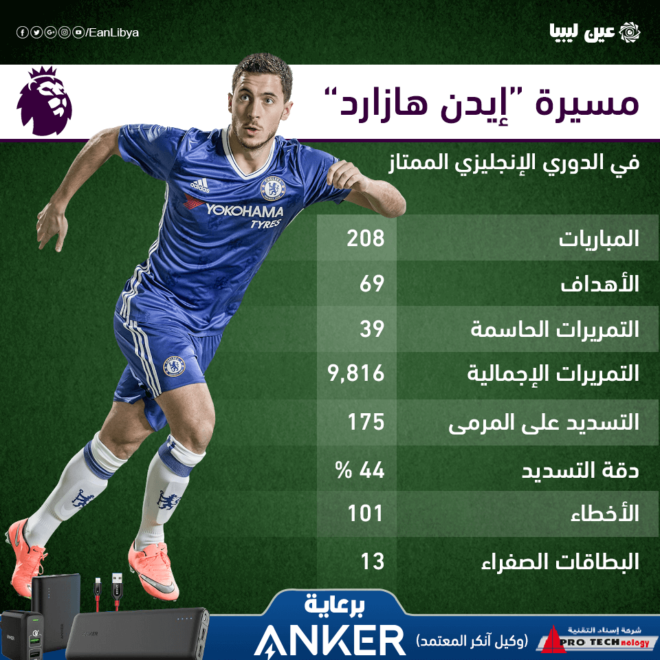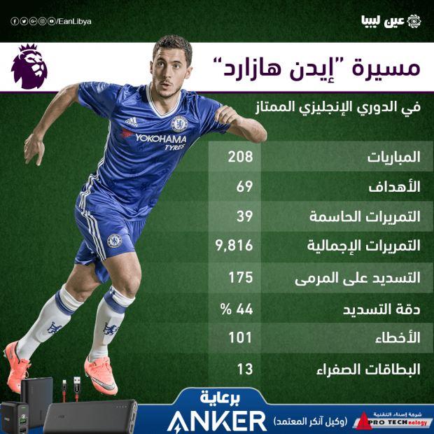 بلغة الأرقام.. مسيرة الدولي البلجيكي «إيدن هازارد» نجم فريق تشيلسي في الدوري الإنجليزي الممتاز