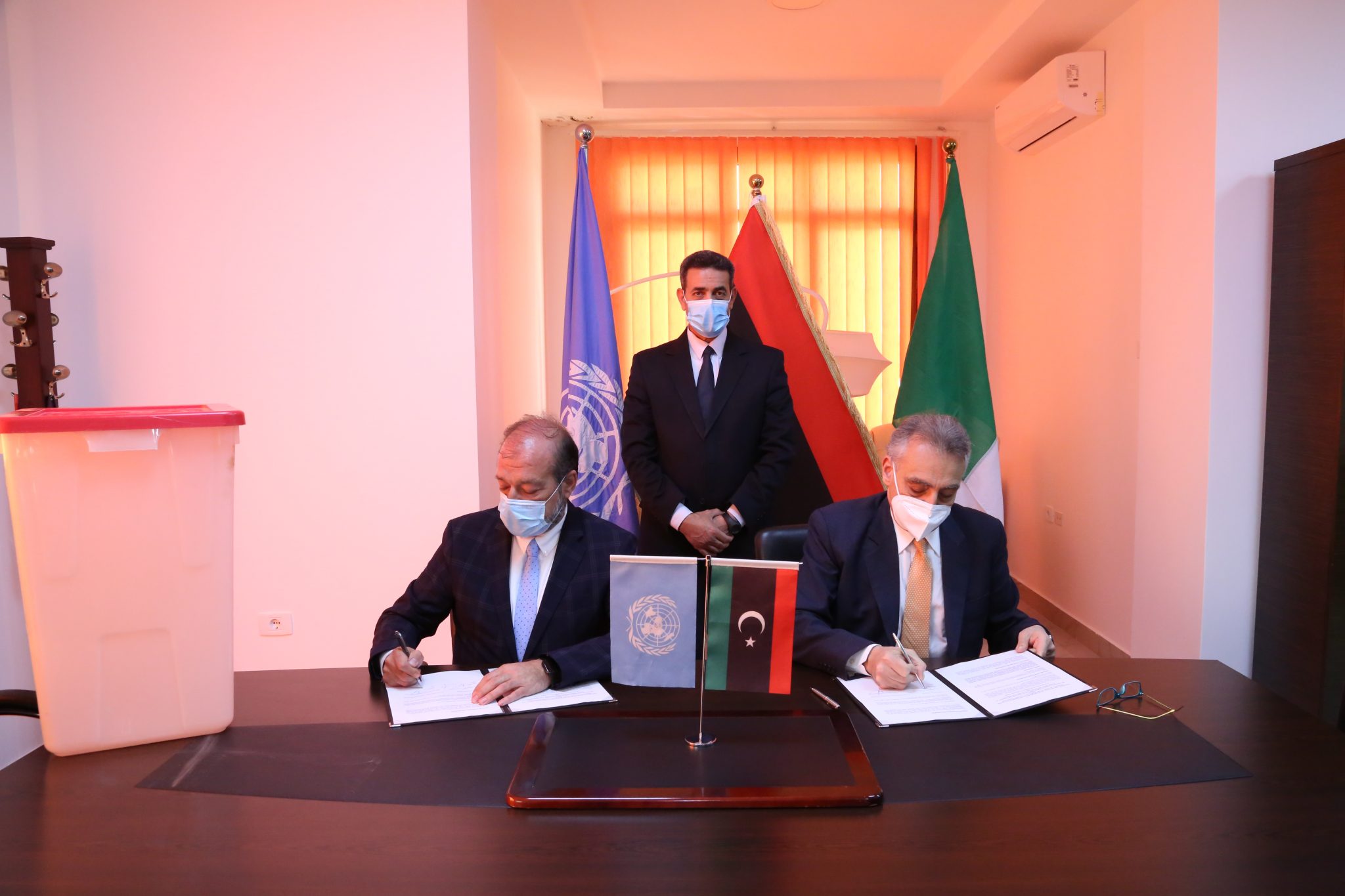 وبحسب المكتب الإعلامي لمفوضية الانتخابات، فقد تمت خلال اللقاء مراسم توقيع اتفاقية مشروع “PEPOL” مع برنامج الأمم المتحدة الإنمائي الذي يمثله المقيم جيراردو نوتو.