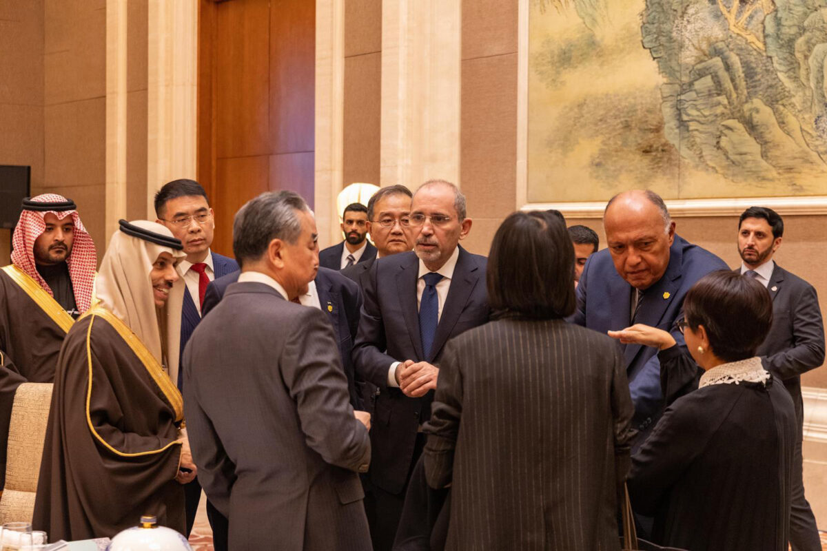 وفي بداية اللقاء، ألقى وزير الخارجية الصيني، كلمة رحب فيها باللجنة الوزارية العربية الإسلامية، مؤكداً دعم بكين للدعوة الصادرة عن قمة الرياض لحل الدولتين وفقاً للقرارات الدولية ذات الصلة، كما دعا المجتمع الدولي إلى التحرك لإنهاء الكارثة الإنسانية في قطاع غزة.