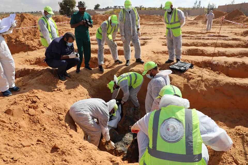 وأفادت الوزارة في منشور عبر صفحتها الرسمية على فيسبوك، بأنه وبإشراف مكتب النائب العام، قامت اللجنة المكلفة بقرار صادر من وزير العدل للبحث والكشف عن المقابر الجماعية بمدينة ترهونة، بتسليم جثتين اثنتين عُثِر عليهما في المقابر الجماعية بمشروع الربط بالمدينة.