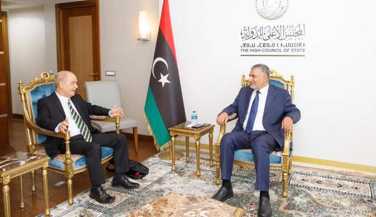 كما تناول اللقاء تطورات العملية السياسية في ليبيا، إضافة إلى سبل تعزيز العلاقات الثنائية بين البلدين وبحث القضايا ذات الاهتمام المشترك، بحسب ما أفاد المكتب الإعلامي بالمجلس الأعلى للدولة.